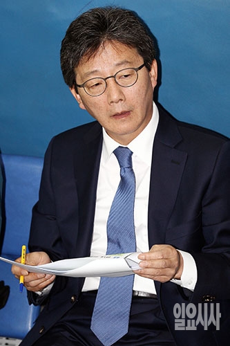 바른정당 유승민 대선후보가 2일 오전 서울 영등포구 영등포경찰서 중앙지구대를 방문해 근무자의 건의 사항을 경청하고 있다.