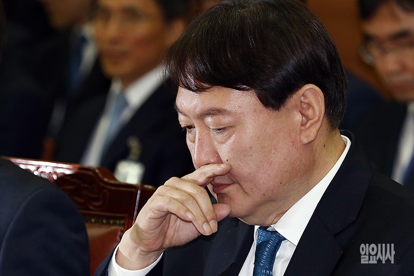 윤석열 서울중앙지검장이 23일 오전 서울 서초구 서울고등검찰에서 열린 국회 법제사법위원회의 서울고등검찰청·서울중앙지방검찰청 등에 대한 국정감사에서 의원들 질의에 대해 생각을 하고 있다.