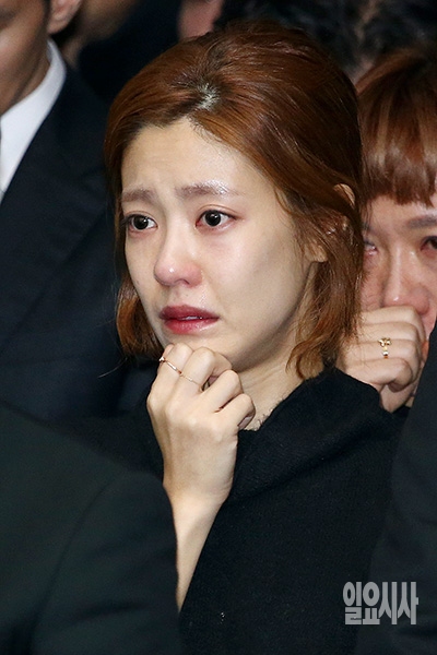 배우 이윤지가 2일 오전 서울 송파구 서울아산병원 장례식장서 진행된 배우 고 김주혁의 발인에 참석해 눈물을 흘리고 있다.