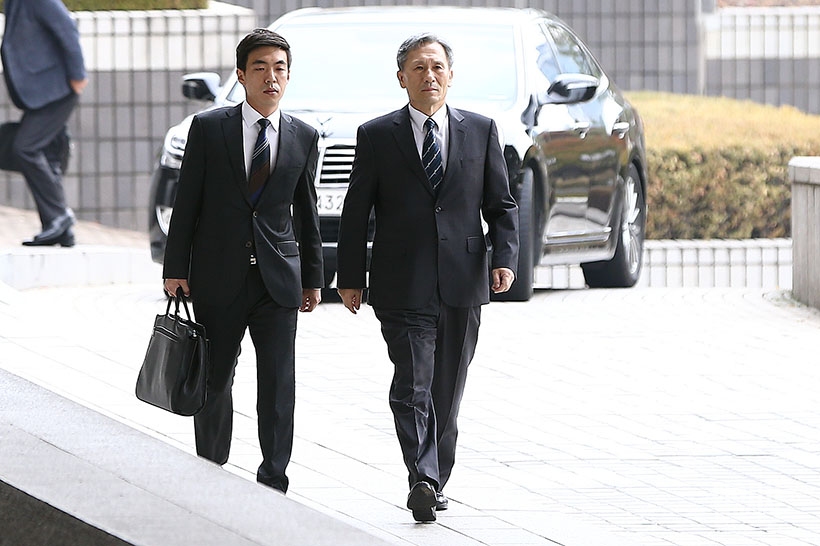 군 사이버사령부 댓글 공작에 관여한 의혹을 받고 있는 김관진 전 국방부장관이 7일 오전 서울 서초구 서울중앙지검에 피의자 신분으로 출석하고 있다.