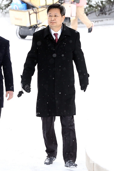 [포토] 눈길 헤치고 오는 김장겸 전 MBC 사장