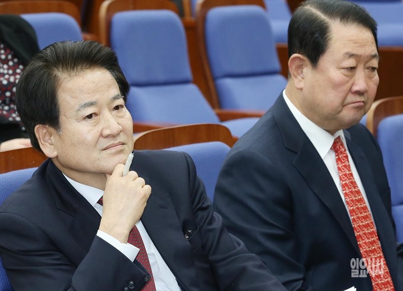 20일, 서울 여의도 국회서 국민의당 의원총회가 열린 가운데 정동영(사진 왼쪽)·박주선 의원이 걱정스런 표정을 짓고 있다.