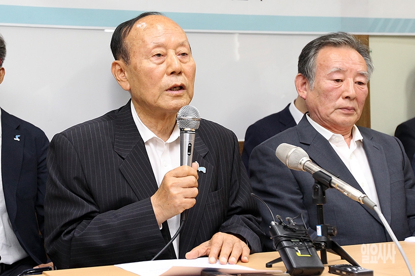 이창복 6·15 공동선언실천 남측위원회 상임대표의장이 25일 오후 서울 종로구 6·15공동선언실천 남측위원회 사무실에서 지난 20일 부터 23일까지 평양에서 열린 '6·15 민족공동위원회 남북해외위원장회의' 결과 발표 기자회견을 하고 있다.