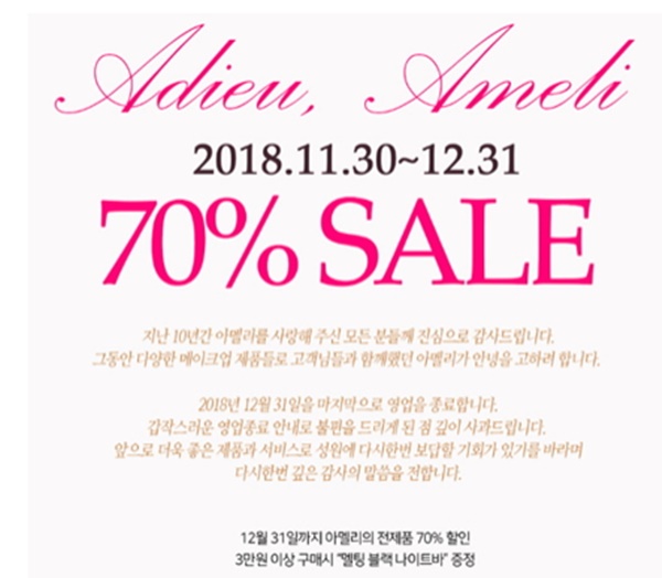 [일요시사 취재 2팀] 김민지 기자 = 코스메틱회사 아멜리가 유통을 중단한다.