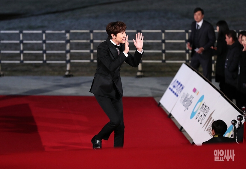 배우 이광수가 21일 인천 영종도 파라다이스시티에서 열린 제40회 청룡영화상 시상식에서 레드카펫을 밟고 있다.