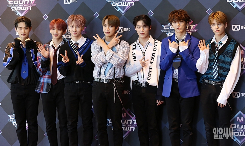그룹 VERIVERY(베리베리)가 6일 서울 마포구 CJ E&M 사옥에서 열린 Mnet 음악프로그램 <엠카운트다운> 포토행사에서 포토타임을 갖고 있다.