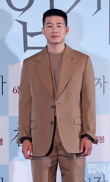 배우 김무열이 27일 서울 용산구 CGV용산점에서 열린 영화 <침입자> 언론시사회에서 포토타임을 갖고 있다.