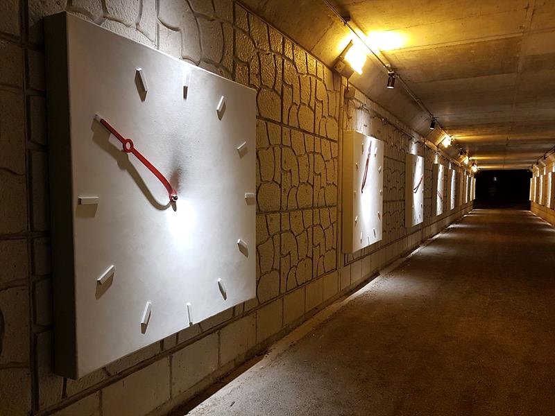 44m 터널 안에 초바늘만 있는 1800㎜×1800㎜의 시계 판 18점이 터널 양쪽 88m으로 배열돼있다. 초침을 애니메이션 스톱모션 기법처럼 배열해 걸어가는 관람객의 머릿속에 레이어 형식으로 겹쳐지면서 시계 판 초바늘이 움직이는 모습이 연상될 수 있도록 기획했다.