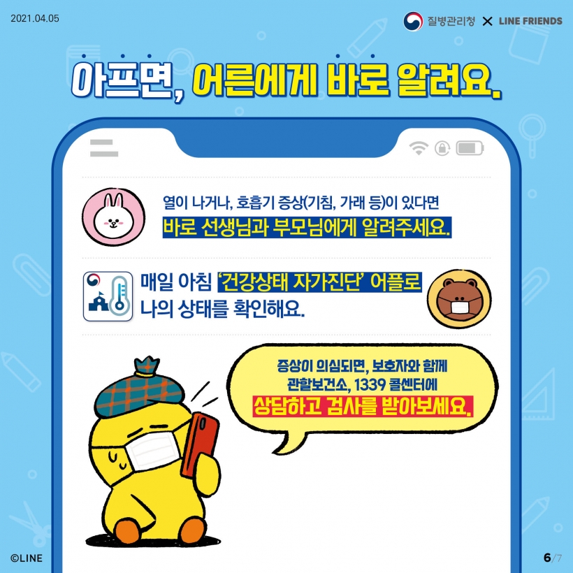 아래는 친구와 나를 위한 코로나19 예방 핵심 방역수칙입니다.