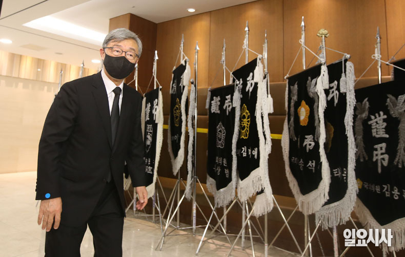 최재형 전 감사원장이 9일 오전 서울 서대문구 연세대학교 세브란스병원 장례식장에 마련된 부친 최영섭 예비역 해군 대령 빈소에 들어서고 있다. 고인은 6·25 대한해협 해전의 영웅으로 불렸다. 향년 93세.