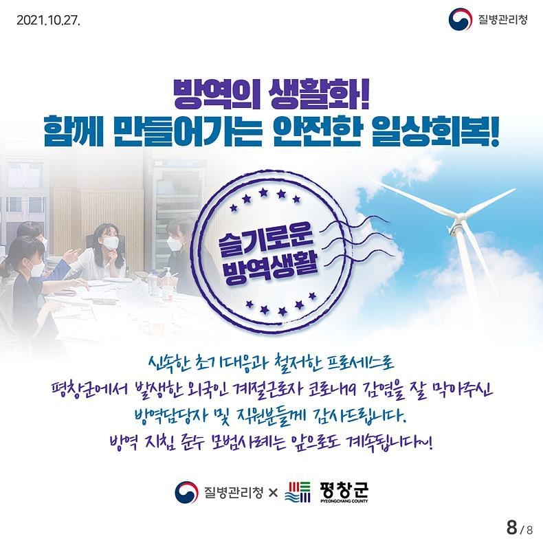 신속한 초기대응과 철저한 프로세스로 평창군에서 발생한 외국인 계절 근로자들의 코로나 19 감염을 잘 막아주신 방역담당자 및 직원분들에게 감사드립니다.