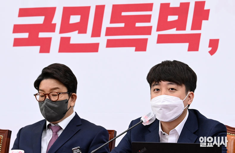 국민의힘 이준석 대표가 21일 오후 서울 여의도 국회에서 열린 '더불어민주당의 검수완박 법안 강행처리 저지를 위한 국민의힘 당 대표-중진의원 긴급 연석회의'에서 발언을 하고 있다.