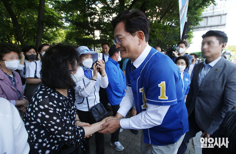 이날 송 후보는 이른 오전부터 중구에서 출근인사를 시작으로 성동구·송파구·강남구·동작구·관악구·양천구를 다니며 유세를 펼쳤다.