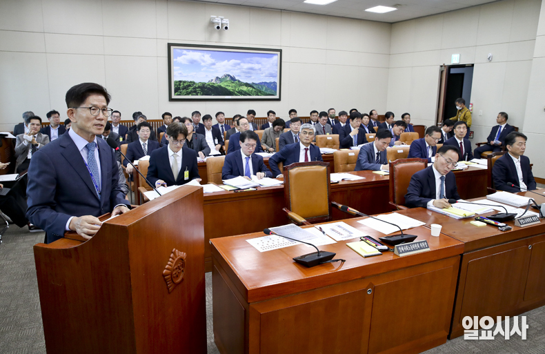 김문수 경제사회노동위원장이 17일 서울 여의도 국회에서 열린 환경노동위원회 경제사회노동위원회, 최저임금위원회 등에 대한 국정감사에 출석해 의원들 질의에 답변하고 있다.