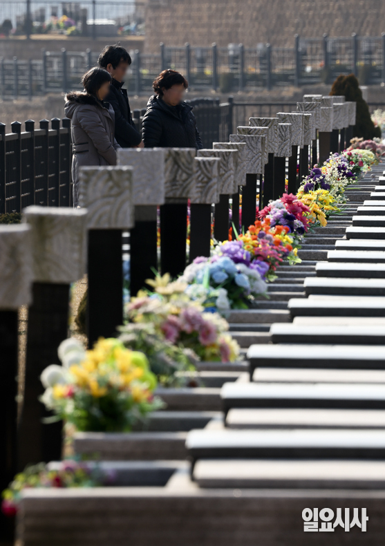 민족 명절인 설을 열흘 앞두고 있는 가운데 31일 오후 경기 용인시 용인공원묘원을 찾은 성묘객들이 고인을 추모하고 있다.
