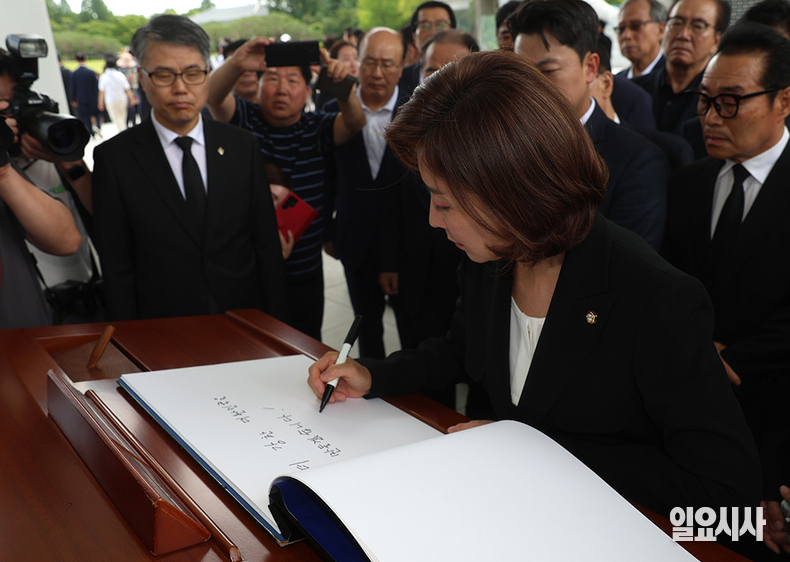 이날 나 의원은 방명록에 '더 강한 대한민국을 만들겠습니다!'라고 적었다.