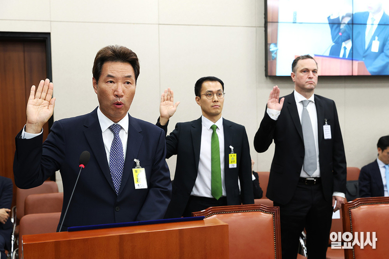 신정권 베스트커머스대표(티메프사태 비대위원장)가 8일 오후 서울 여의도 국회에서 열린 산업통상자원중소벤처기업위원회의 중소벤처기업부, 특허청 등에 대한 국정감사에서 의원질의에 답하고 있다.