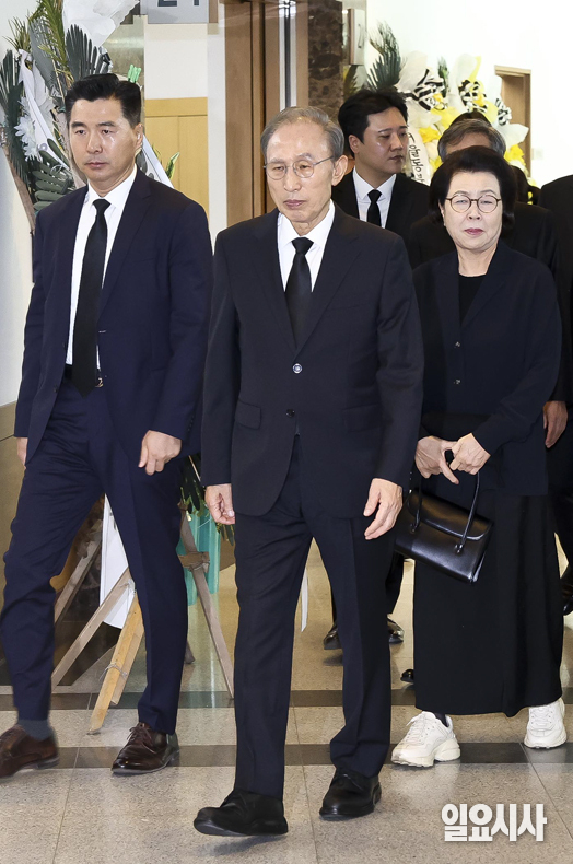 이명박 전 대통령이 23일 서울 송파구 서울아산병원 장례식장에 마련된 고 이상득 전 국회부의장 빈소에 들어서고 있다.