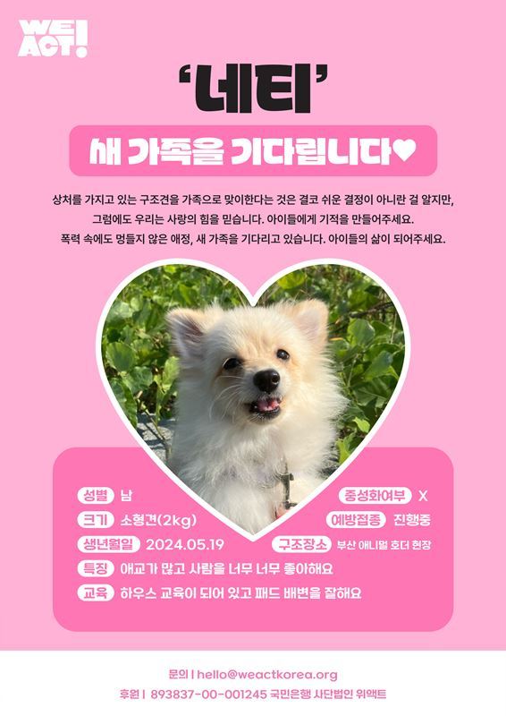 상처를 갖고 있는 구조견을 가족으로 맞이한다는 것은 결코 쉬운 결정이 아니란 걸 알지만, 그럼에도 우리는 사랑의 힘을 믿습니다.