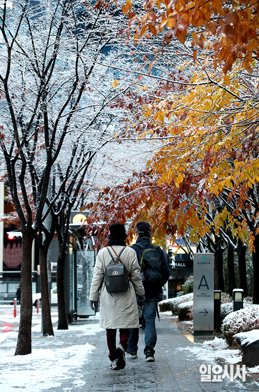서울 지역에 대설특보가 발효된 27일 오전 서울 용산역 일대에 지난 밤 폭설로 생긴 빙판길 위로 시민들이 발걸음을 옮기고 있다.