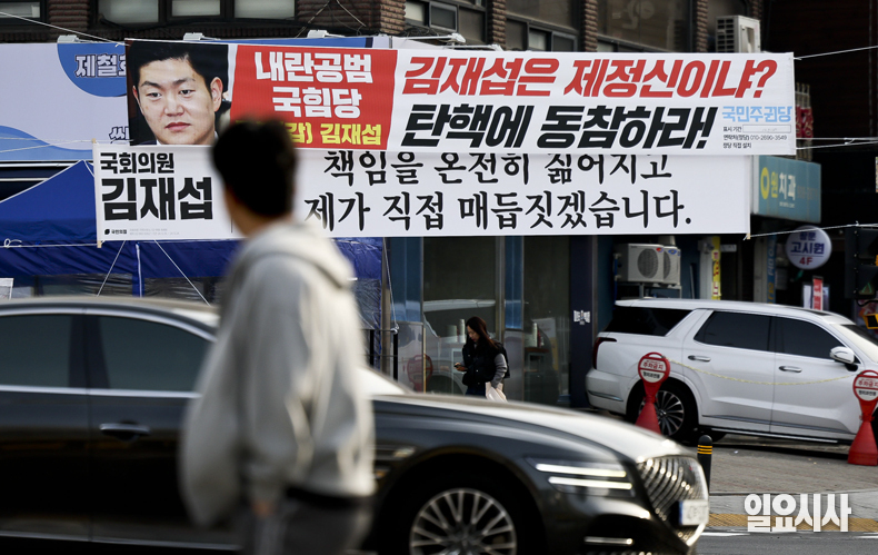 김 의원 사무실에는 전날까지 '내란 공범' '김재섭 OUT' 등 김 의원을 비판하는 근조화환이 배달되기도 했다.