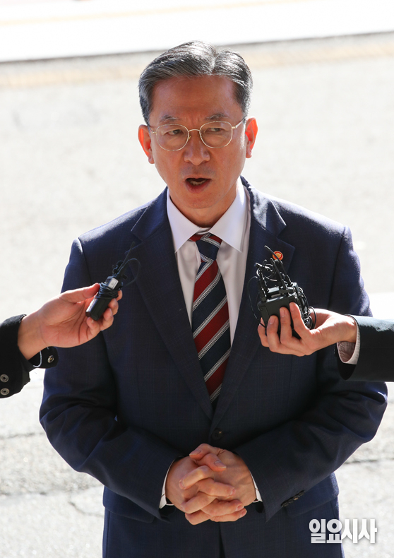 정성호 법무부 장관이 10일 오전 경기 과천 법무부 청사로 출근하며 약식 기자회견(도어스테핑)을 진행하고 있다.