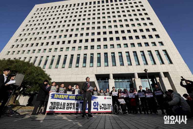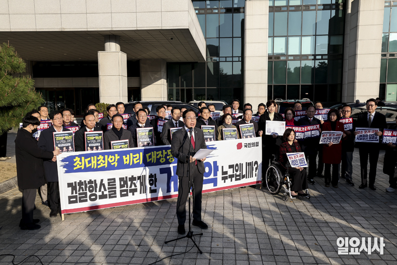 이날 국민의힘은 검찰의 대장동 사건 항소 포기와 관련해 노만석 검찰총장 직무대행 등을 규탄했다.