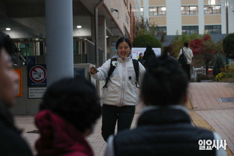 2026학년도 대학수학능력시험(수능)이 치러지는 13일 오전 서울 영등포구 여의도여자고등학교 고사장으로 들어가던 수험생이 되돌아와 마중 나온 할머니와 어머니를 향해 달려오고 있다.