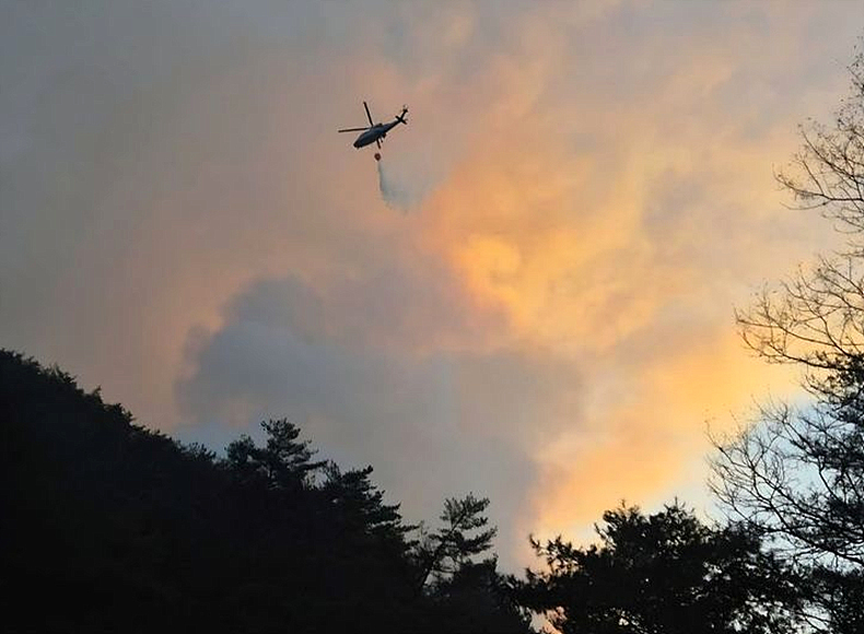 본격적인 진화 작업은 날이 밝은 이날 오전부터 재개됐다. 당국은 일출 시각인 오전 7시14분과 동시에 진화 헬기 29대를 순차적으로 투입해 공중에서 물을 뿌리며 확산을 저지하고 있다.