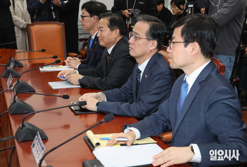이날 정부 측에서는 윤창렬 국무조정실장과 여한구 통상교섭본부장, 박윤주 외교부 1차관, 이두희 국방 차관, 이형일 기재부 1차관 등이 회의에 참석했다.