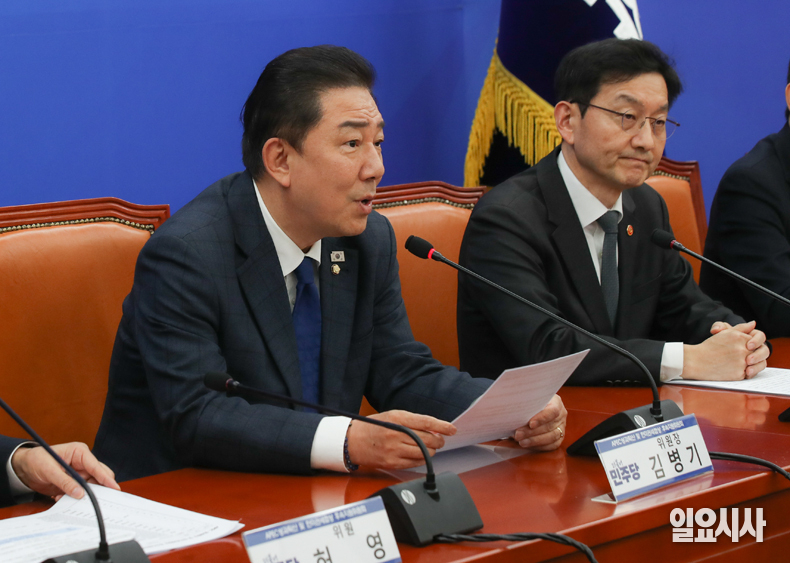 더불어민주당 김병기 원내대표가 25일 오후 서울 여의도 국회에서 열린 ‘APEC 성과 확산 및 한미관세협상 후속지원위원회 출범식’에서 발언하고 있다.