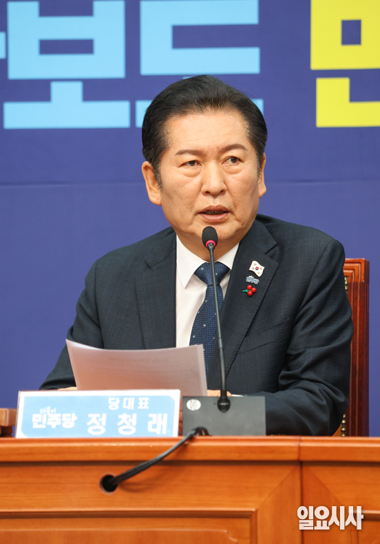 더불어민주당 정청래 대표가 5일 오전 서울 여의도 국회에서 열린 최고위원회의에서 발언하고 있다.