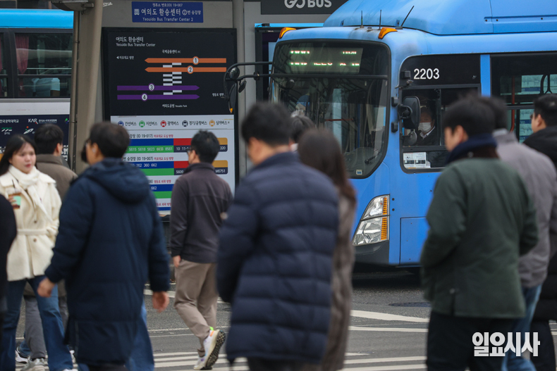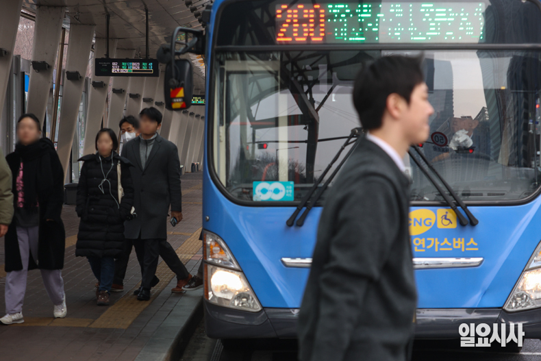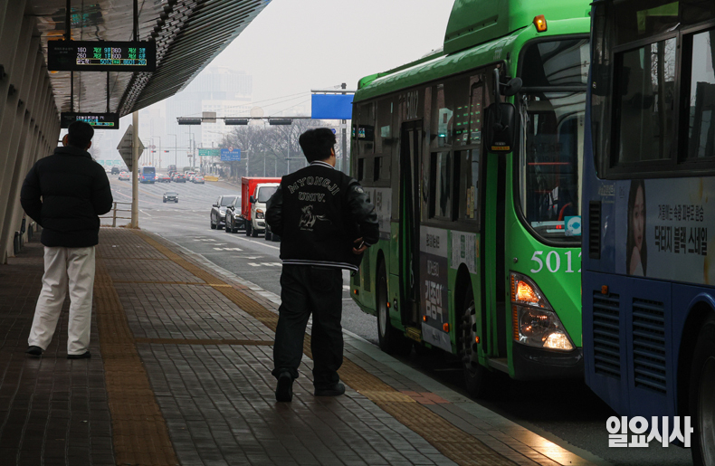 서울 시내버스가 다시 운행을 시작한 가운데 지팡이를 짚은 시민이 15일 오후 서울 여의도 버스환승센터에서 버스에 올라타고 있다.