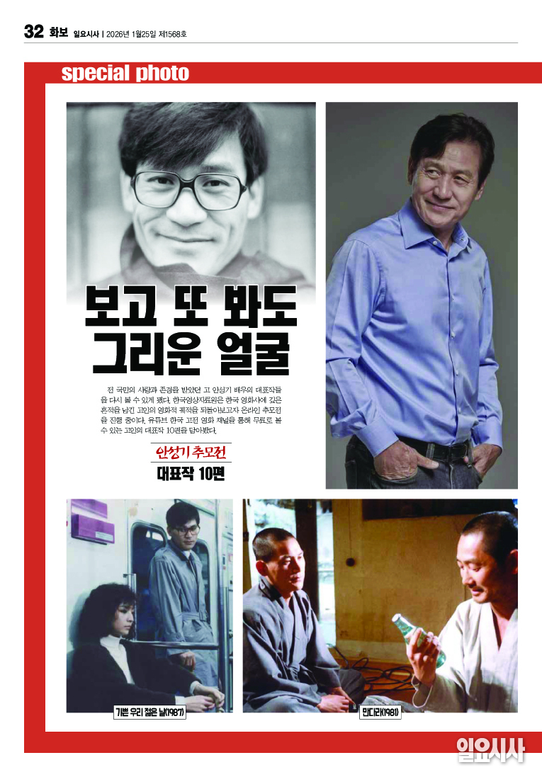 전 국민의 사랑과 존경을 받았던 고 안성기 배우의 대표작들을 다시 볼 수 있게 됐다. 한국영상자료원은 한국영화사에 깊은 흔적을 남긴 고인의 영화적 궤적을 되돌아보고자 온라인 추모전을 진행 중이다. 유튜브 한국 고전 영화 채널을 통해 무료로 볼 수 있는 고인의 대표작 10편을 담아봤다.