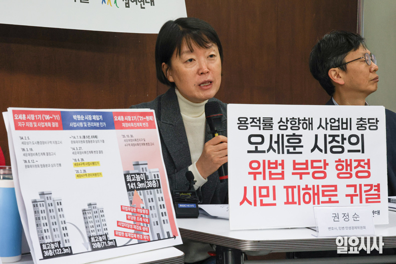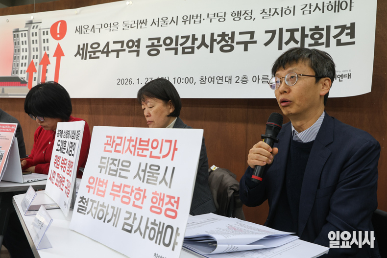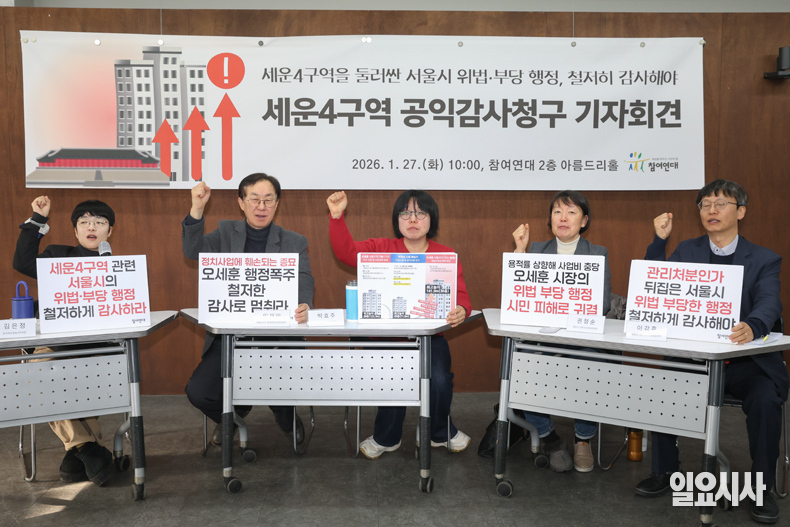 이날 기자회견에서 참여연대는 “오세훈 서울시장이 정치적 자산을 쌓기 위해 허울뿐인 녹지생태축 재창조사업을 완성하고자 종묘의 역사·문화적 가치를 훼손하려 하고 있다”며 “이에 참여연대는 세운4구역 관련 서울시의 위법·부당한 행정에 대한 공익감사를 청구한다”고 밝혔다.
