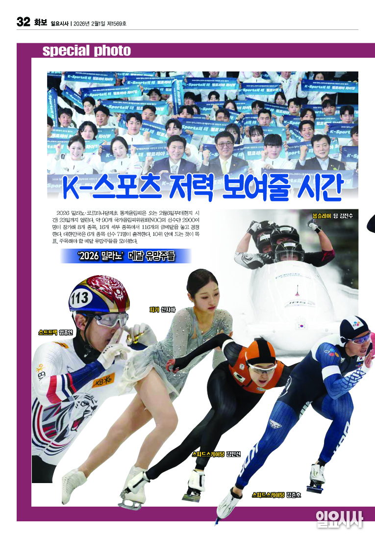 2026밀라노·코르티나담페초 동계올림픽은 2월6일부터(현지시각) 23일까지 열린다. 약 90개 국가올림픽위원회(NOC)의 선수단 2900여명이 참가해 8개 종목, 16개 세부 종목에서 116개의 금메달을 놓고 경쟁한다. 대한민국은 6개 종목 선수 71명이 출격한다. 10위 안에 드는 것이 목표. 주목해야 할 메달 유망주들을 모아봤다.