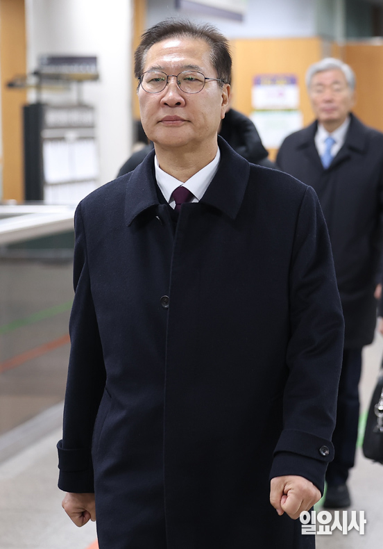 박성재 전 법무부 장관이 9일 오전 서울 서초구 서울중앙지방법원에서 열린 내란 중요임무 종사 등 혐의 사건 2차 공판기일에 출석하고 있다.