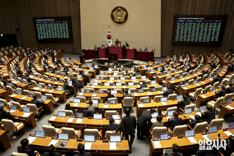 9일 서울 여의도 국회에서 열린 제432회국회(임시회) 제 4차 본회의에서 대미투자특별법 처리를 위한 특별위원회 구성의 건이 통과되고 있다.