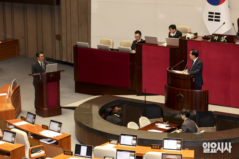 김민석 국무총리가 9일 서울 여의도 국회에서 열린 제432회국회(임시회) 제 4차 본회의에서 열린 대정부 질문(정치·외교·통일·안보 분야)에서 더불어민주당 윤후덕 의원 질의에 답변하고 있다.
