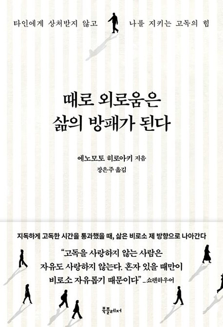 기꺼이 외로움을 받아들였을 때, 가장 큰 행복을 발견할 수 있다는 것이다. 이처럼 외로움을 받아들이는 용기를 가질 때, 외로움은 더 이상 결핍이 아니라 나를 지키고 성장시키는 단단한 방패가 된다. 이 책에는 바로 그 방패를 만드는 방법이 고스란히 담겨있다.