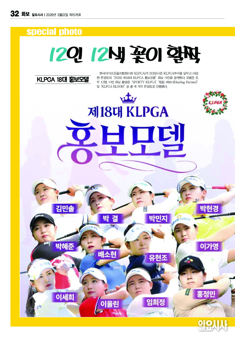 한국여자프로골프협회(이하 KLPGA)가 2026시즌 KLPGA투어를 앞두고 다양한 콘셉트의 ‘2026 제18대 KLPGA 홍보모델’ 화보 사진을 공개했다. 모델은 모두 12명. 이번 화보 촬영은 ‘SPORTY KLPGA’, ‘힐링 파트너(Healing Partner)’ 및 ‘KLPGA BLOOM’ 총 세 가지 콘셉트로 진행됐다. ⓒKLPGA