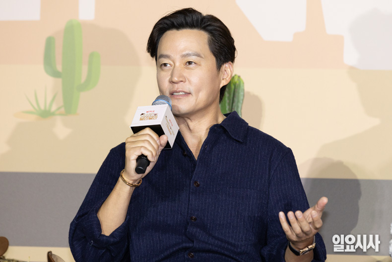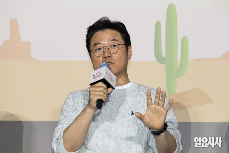 김예슬(왼쪽부터) PD와 배우 이서진, 나영석 PD가 24일 오전 서울 용산구 CGV용산아이파크몰에서 열린 <이서진의 달라달라> 제작발표회에서 포즈를 취하고 있다.