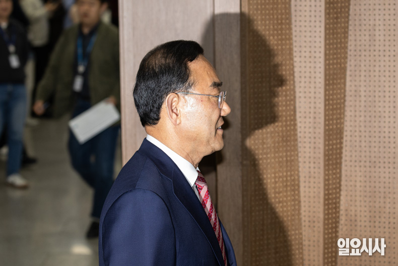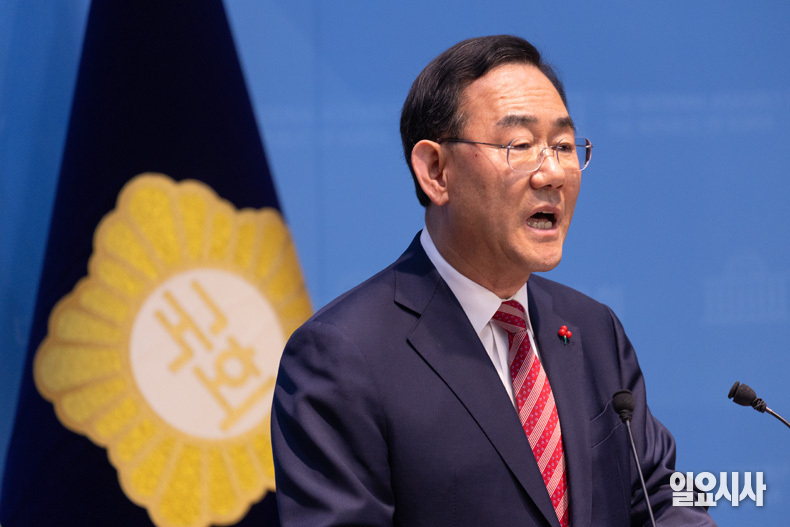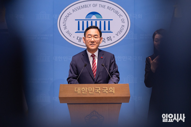 국민의힘 주호영 의원이 26일 오후 서울 여의도 국회 소통관에서 열린 기자회견에서 발언하고 있다.