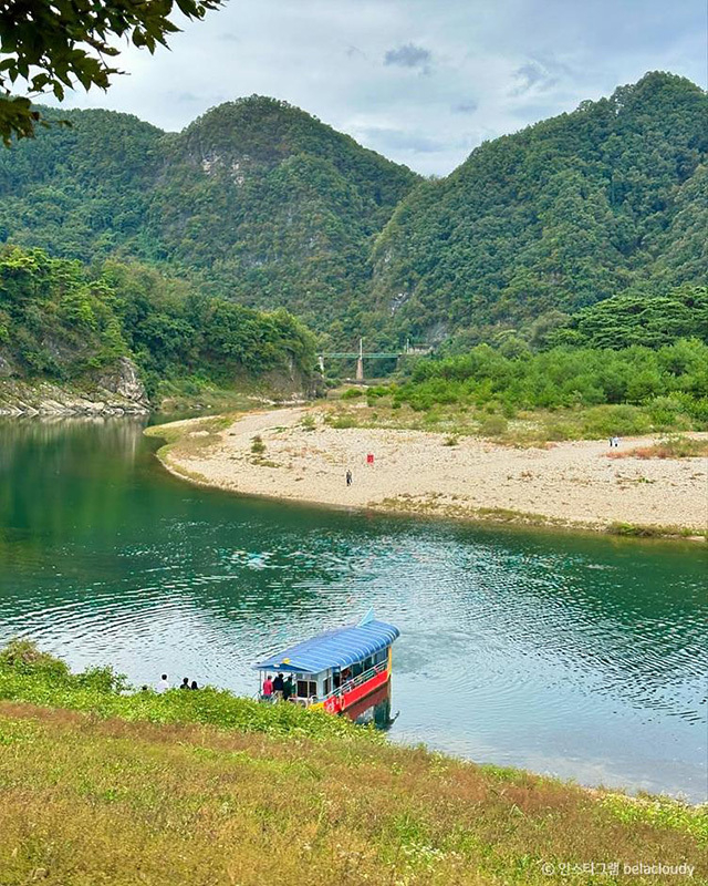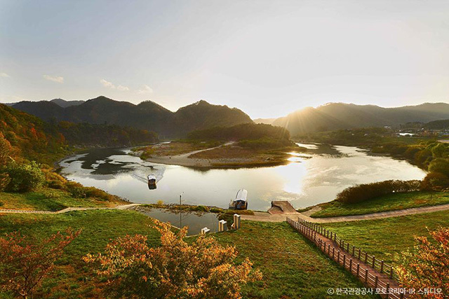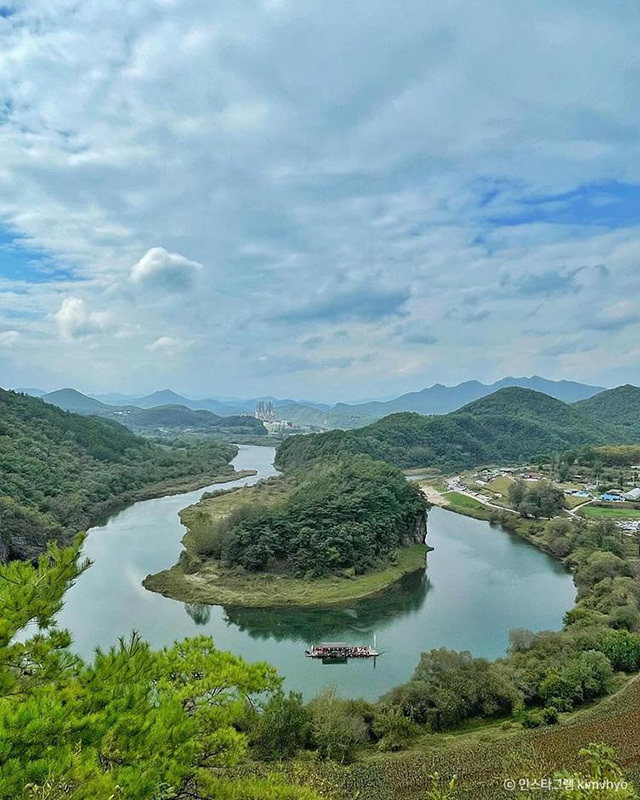 한반도 지형은 하천의 침식 작용으로 형성된 독특한 풍경이다. 전망대에 오르면 굽이치는 강과 어우러지는 풍광을 한눈에 담을 수 있다. 특히 해 질 무렵이면 붉은 석양이 강물에서 반짝이는 장면을 만날 수 있다. 하늘과 강, 산 능선이 겹겹이 물드는 시간대인 해 지기 30분 전쯤 방문하시는 걸 추천한다.