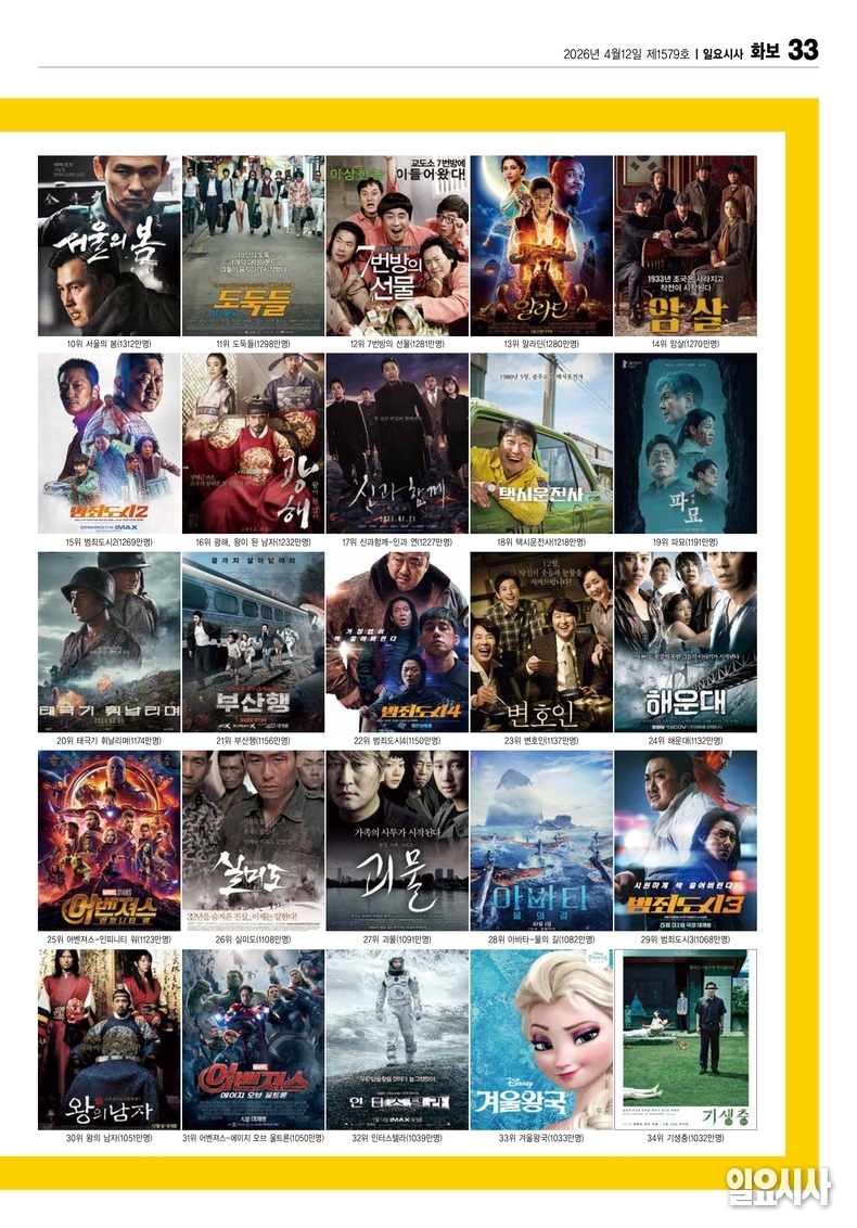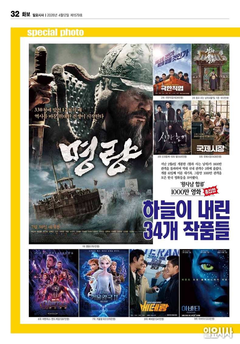 2월4일 개봉한 <왕과 사는 남자>가 1600만 관객을 돌파하며 역대 국내 관객수 3위에 올랐다. 개봉 61일째 이룬 대기록. 그동안 1000만 관객을 모은 한국 영화들을 모아봤다.