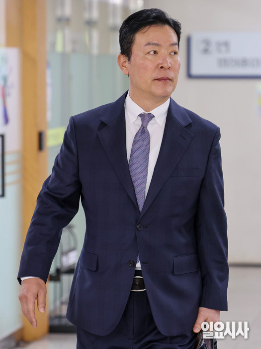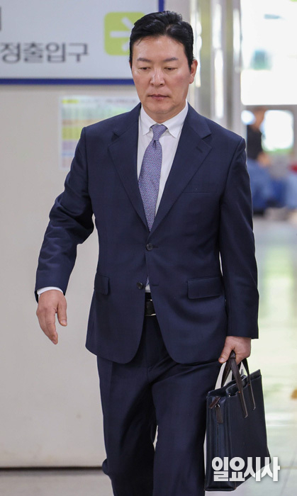 김성훈 전 대통령 경호처 차장이 23일 서울 서초구 서울중앙지방법원에서 열린 공판에 출석하고 있다.