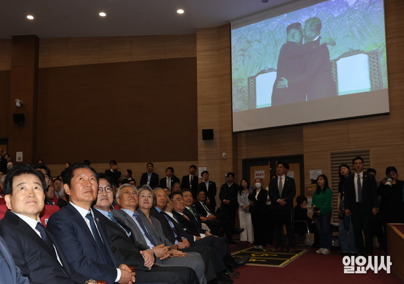 이날 국회 의원회관 대회의실에서 열린 ‘4.27 판문점선언 8주년 기념식’에는 문 전 대통령과 김 여사, 우원식 국회의장, 더불어민주당 정청래 대표, 조국혁신당 조국 대표, 권노갑 김대중재단 이사장 등이 참석했다.