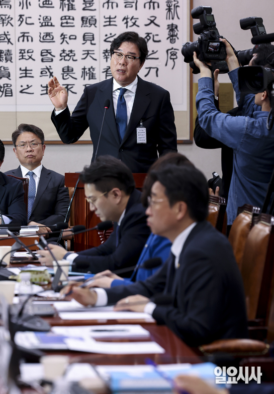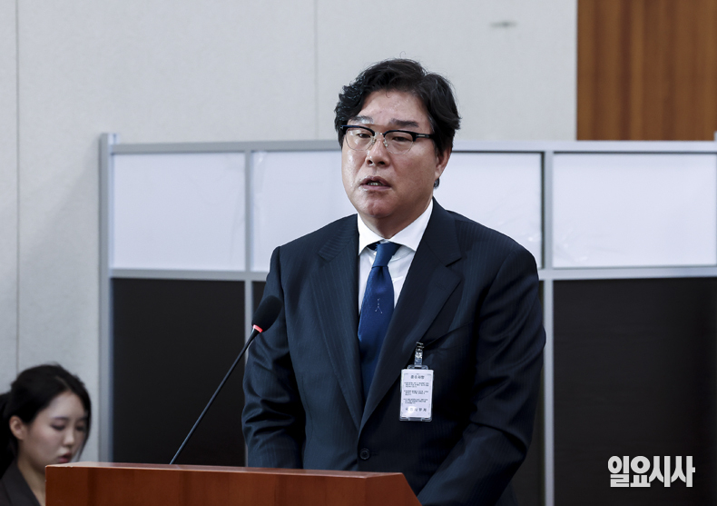 김성태 전 쌍방울 회장이 28일 서울 여의도 국회에서 열린 국조특위(윤석열정권 정치검찰 조작기소 의혹 사건 진상규명 국정도사특별위원회) 전체회의에서 의원 질의에 답변하고 있다.