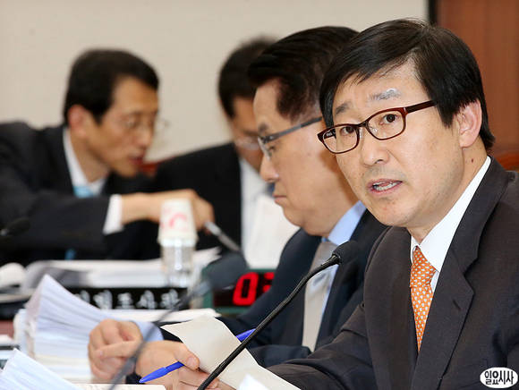 민주통합당 박범계 의원이 19일 서울 여의도 국회에서 열린 법제사법위원회 전체회의에서 권재진 법무장관에게 질의하고 있다.