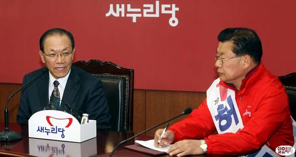 황우여 새누리당 대표가 2일 오후 서울 여의도 당사에서 열린 4·24 재보궐선거 공천장 수여식을 마친 뒤 모두발언을 하고 있다.